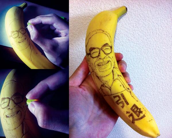 Aujourd'hui le WTF concerne le banane Art, pourquoi des banane. Là est l'incompréhension. Mais apparemment c'est populaire au japon et pour cause, cela donne des rendu digne de louange. Le premier artiste que nous allons vous montrer se consacre, lui au tatouage sur banane. Pour ce faire il suffit d'avoir une punaise et un bon stock de banane. Et surtout il faut savoir dessiner... Sinon c'est plus dur.