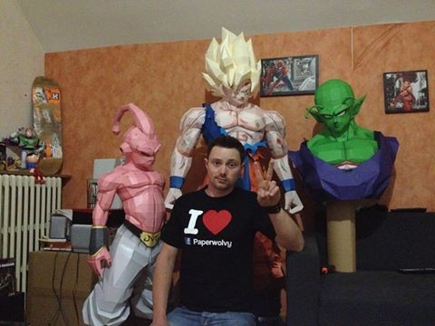 Paperwolvy pause ici avec ses créations en papier; Sangoku, Boo et Piccolo